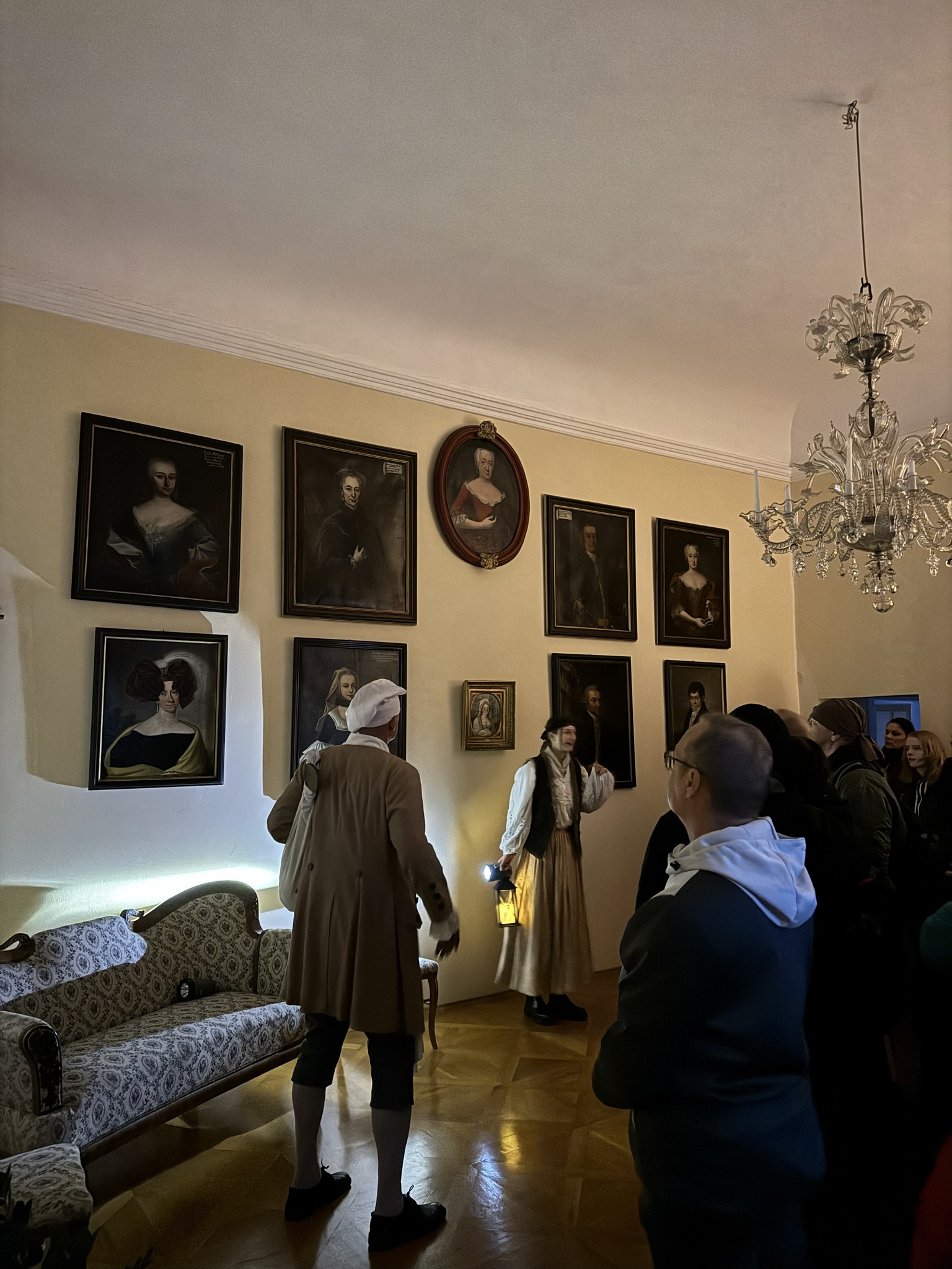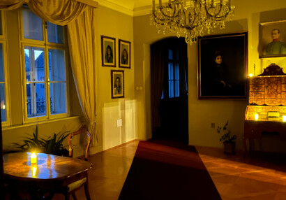 ZpětVečerní prohlídky plné humoru a zámeckých historek. Přidrzlí sloužící spolu s hraběcím učitelem a chrápající hraběnkou se postarali o nevšední zážitek.
